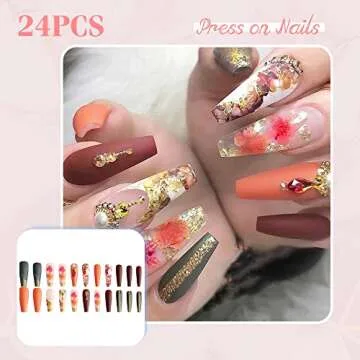 Included in the set are 24pcs of long coffin nail tips in 12 diverse sizes, making it easy to find the perfect fit for your nail beds, even for beginners. The kit also comes with essential tools like a mini file, a wooden stick, a glass file, a tutorial card, and glue stickers to help you achieve a flawless manicure in no time.