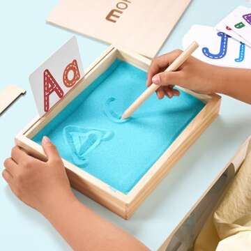 Introduce your child to the world of writing with the MORITECK Montessori Sand Tray! This innovative writing play tray offers an unparalleled approach to early writing skills, allowing young learners to practice their letters and numbers in a delightful and tactile way. Measuring 8.9" x 7.1" x 1.4", this beautifully crafted sand tray is made from solid 1.2-inch thick beech wood, ensuring durability and stability during use. Its smooth surface invites children to trace with their fingers,...