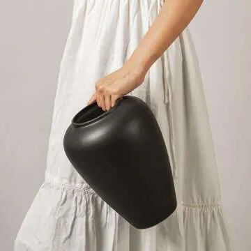 MORSHA Ceramic Black Vase Home Decor, Flower Vase Modern Trendy Black Vase, Minimalist Farmhouse Table Gift CuteTall Vintage Bookshelf Dining and Coffee Table Decor,Size 9" (23cm) 1pack