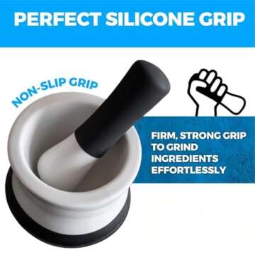 Mortar and Pestle Set, Small Ceramic Pestle and Mortar Bowl, No Slip Silicone Handle and Base, White and Black Spice Grinder & Crusher Muddler Set, Spice & Herb Grinder Bowl, Mortero para Cocina