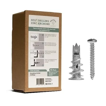 Show more Transform your home improvement projects with the Mortice and Tenon Self-Drilling Metal Drywall Anchors. This exceptional kit, made from premium materials such as zinc alloy and Grade 2 Carbon steel, provides a reliable solution for both the seasoned DIY expert and the casual home decorator. Included in this comprehensive set are 50 drywall screws and 50 wall anchors, ensuring you have an ample supply for various applications. Whether you’re repairing old holes or installing new fixtures, this drywall anchor kit is designed to perform reliably under pressure.