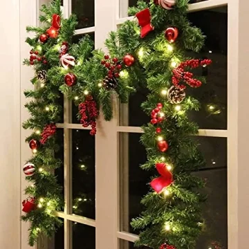 Transform your holiday decor into a winter wonderland with the stunning MorTime 9 FT LED Christmas Garland. Measuring an impressive 9 feet in length, this exquisite garland is a perfect blend of realistic greenery, vibrant pinecones, red berries, bows, and charming Christmas balls, making it an eye-catching centerpiece for any festive setting. Crafted with over 180 branch tips, its fullness and depth are sure to impress your holiday guests, capturing the true essence of the season while adding...