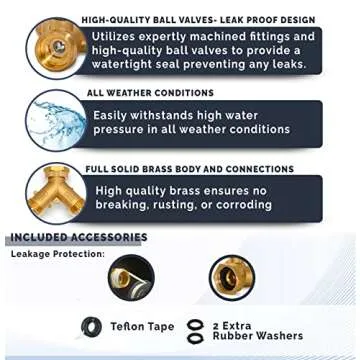 Morvat Heavy Duty Brass 2 way Y Splitter Garden Hose Hexagonal Connector with Comfortable Grip Shut Off Valves, Adapter for Water Tap, Outlet, & Spigot, Includes 2 Extra Rubber Washers & Teflon Tape
