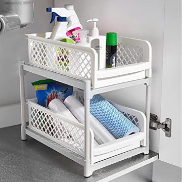 Moryimi 2 Tier Under Sink Cabinet Organizer with Pull Out Drawer for Easy Access