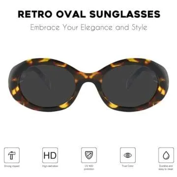 mosanana Oval Retro Trendy Sunglasses for Women Cute Sunnies 90s Style Fashion Shades Tortoise MS52371