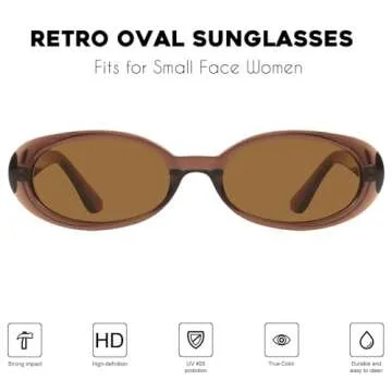 mosanana Retro Oval Sunglasses for Women 90s Small Trendy Vintage Cool Narrow Tiny Cute Small Face 2024 Nude Frame Brown Lens MS52359