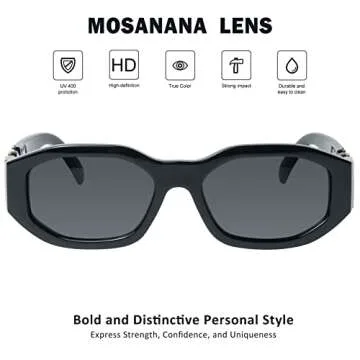 mosanana Trendy Sunglasses for Women Men Black Rectangle Vintage Retro Fashion Cool 90s Cute Rectangular Funky Stylish Chunky Baddie Tracer