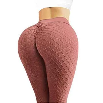 MOSHENGQI Women's Ruched Butt Lifting High Waist Yoga Pants Tummy Control Stretchy Workout Leggings Textured Booty Tights(Medium,#3 Pale Mauve)