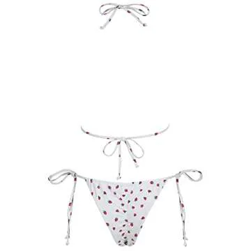 The bottom showcases a trendy side tie design, complemented by a cheeky thong Brazilian style that is sure to turn heads. Not to mention, this set includes a cute hair scrunchy, tying together your beach look effortlessly. Available in solid colors and eye-catching leopard prints, this bikini caters to those with a bold fashion sense who aren't afraid to stand out.