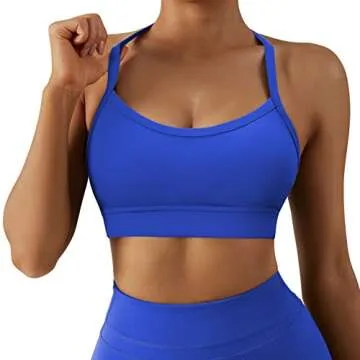 MOSHENGQI Y Back Padded Sports Bra for Women Racerback Strappy Workout Yoga Bra(S,215-Royal Blue)