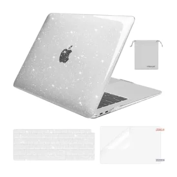 MOSISO Compatible with MacBook Air 13 inch Case 2022 2021 2020 2019 2018 A2337 M1 A2179 A1932, Glitter Plastic Hard Shell&Keyboard Cover&Screen Film&Storage Bag for MacBook Air 13 inch, Transparent