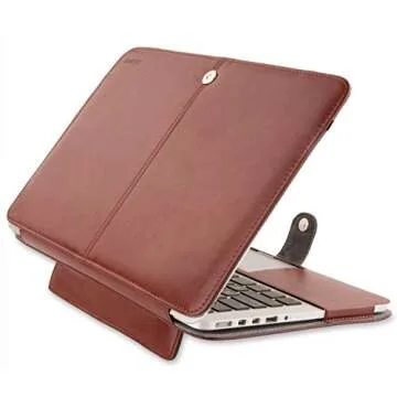 MOSISO Compatible with MacBook Pro 15 inch Retina (A1398, Version 2015/2014/2013/end 2012), PU Leather Portfolio Protective Stand Cover Sleeve, Brown