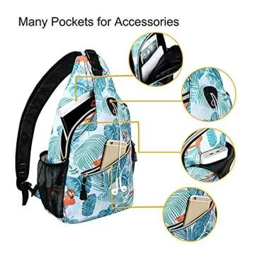 MOSISO Sling Backpack,Travel Hiking Daypack Pattern Rope Crossbody Shoulder Bag, Flamingo