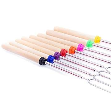 Featuring **wooden handles**, the telescoping skewers provide a sturdy grip for users of all ages, making them not only tough and durable but also exceptionally comfortable to use. With a **set of 8 sticks**, you’ll have plenty to go around—perfect for family gatherings or camping trips with friends. Plus, each stick comes in **8 vibrant colors**, ensuring no more fights over whose turn it is to roast. Let the kids pick their favorite color, creating a fun atmosphere filled with laughter and enjoyment as they roast their favorite treats.