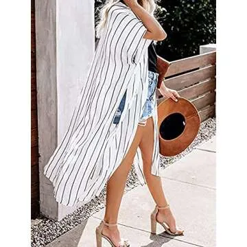 Moss Rose Women's Beach Cover up Swimsuit Stripe Kimono Cardigan Loose Casual Resort Wear