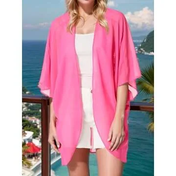 Moss Rose Women's Beach Kimono Coverup Sheer Chiffon Cover Ups, Casual Loose Open Front Cardigan Tops Solid Fushia