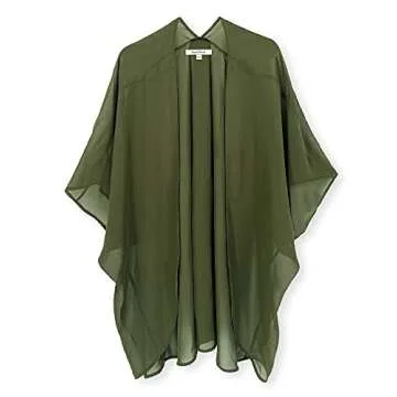 Moss Rose Women's Beach Kimono Coverup Sheer Chiffon Cover Ups, Casual Loose Open Front Cardigan Tops Solid Olive