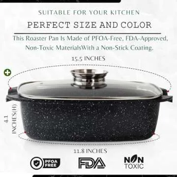 Moss & Stone Die Cast Aluminum Oval Roaster Pot 12-Inch, Induction Compatible, Gas Stove Top & Ceramic Cooktop, Hard Anodized Nonstick Roasting Pan With Lid, Chicken Roaster Oven Safe 6 Quart 8.3"x12"