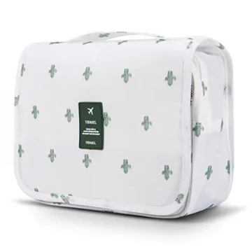 Mossio Hanging Toiletry Bag - Large Cosmetic Makeup Travel Organizer for Men & Women with Sturdy Hook (White Cactus)