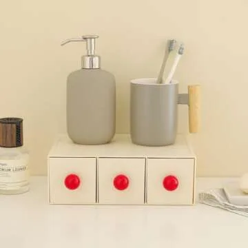 Show moreIntroducing the MOTDWKYD Stackable Drawer with 3 Drawers, your new best friend in home organization! Crafted with a delightful retro design in chic beige, this drawer set is perfect for squeezing into tight spaces and providing practical storage solutions. Its versatile functionality allows you to store everything from makeup essentials like lipsticks, nail polishes, and foundation to bathroom necessities such as Q-tips, cotton balls, and hair ties. Its compact size of 6.5 x 3.1 x 9.2 inches makes it an ideal fit for narrow bathroom vanities or kitchen countertops, enhancing your decor while keeping items neatly organized.
