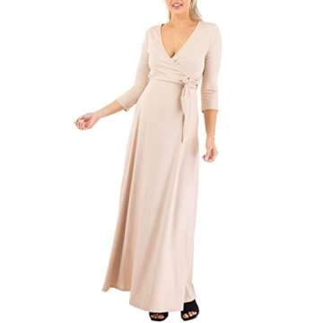 The thoughtful design includes 3/4 sleeves, which provide just the right amount of coverage while still keeping you cool and stylish. The faux wrap style flatters every figure, draping gracefully to highlight your lovely baby bump. Whether you wear it for a casual day out or dress it up for a special occasion, you are sure to turn heads and spark compliments!