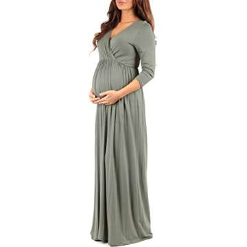 Mother Bee Maternity V-Neck 3/4 Sleeve Ruched Waist Dress