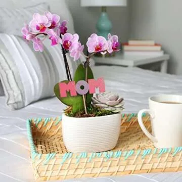 Why You Will Love This Product: Imagine the joy on your mom’s face as she unwraps this beauty, a radiant pink orchid accompanied by a lush succulent, all nestled in an elegant white ceramic pot. It’s not just a gift; it’s a gesture filled with love, a lovely reminder of your bond that blooms as vividly as the flowers themselves. This planter adds a vibrant touch to her space, serving as a daily reminder of your affection every time she walks by. With the Mother’s Day Flower Planter S5070, you’re not just giving a plant; you’re sharing a lasting memory.