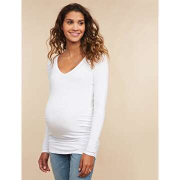 Motherhood Maternity Women's Maternity Long Sleeve V-Neck Side Ruched Fashion Tee Shirt, White, Small