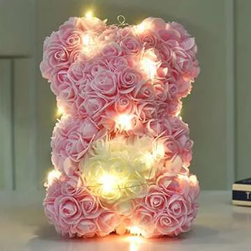 Mothers Day Rose Teddy Bear Gifts for Women, Rose Flower Bear Birthday Gifts for Women, Gifts for Her Girlfriend Mom, Rose Bear Anniversary Flower Mom Gifts(Light Pink)