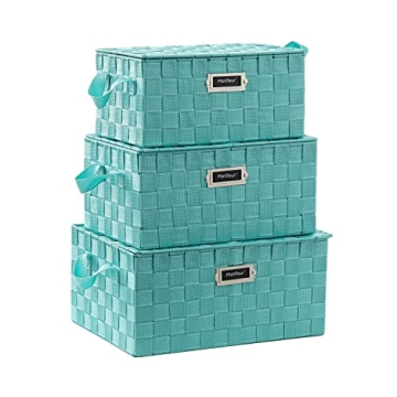 Motifeur Decorative Woven Strap Baskets with Lid for Organized Living