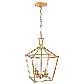 Introducing the MOTINI 4-Light Gold Lantern Pendant Light, a stunning blend of modern design and classic elegance that transforms any space with its captivating charm. Crafted from high-quality metal and finished in a beautiful burnished brass, this geometric light fixture is the perfect addition to your kitchen island, dining room, or foyer. Its adjustable chain allows for customizable height, ensuring a perfect fit for any room, whether you have high ceilings...