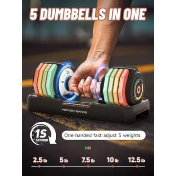 Show more Introducing the ultimate solution for home fitness enthusiasts, the 5-in-1 Adjustable Dumbbell Set. With this innovative dumbbell set, you can easily toggle between five weight options, ranging from 4.5 to 22.5 pounds. Perfectly designed for full-body workouts, each pair of dumbbells can reach a maximum weight of 45 pounds, providing a versatile workout experience without the need for multiple dumbbell sets.