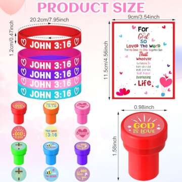 The gift set includes 60 Jesus loves me cards, 60 silicone bracelets, and 60 religious stampers.