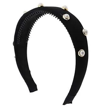 Motique Accessories 2 Inch Chiffon Padded Headband with Inset Pearls - Black