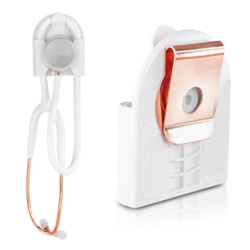 Show moreIntroducing the MotivatEM Clip-on Stethoscope Holder, the ultimate solution for healthcare professionals seeking comfort and convenience. Designed for physicians, nurses, and students alike, this innovative stethoscope holder allows you to carry your beloved stethoscope effortlessly at your waist, significantly alleviating neck strain associated with traditional methods. Constructed with a durable and lightweight design, this holster not only secures your stethoscope but also keeps it readily available as you navigate through your busy day. The sleek white and rose gold finish adds a touch of elegance, making it not just functional but also stylish.