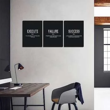 Show moreTransform your space with our exquisite Motivational Office Wall Decor Success Execute Failure Quotes, a stunning canvas painting set that features three captivating panels. Each piece, measuring 16"W x 24"H (40x60cm), is designed not just to beautify a room, but to inspire and motivate. Made with high-definition printing technology, these prints showcase vivid colors that are both waterproof and UV resistant, ensuring that they retain their vibrant appeal through the seasons. The modern aesthetic is perfect for any environment, encouraging a positive mindset for entrepreneurs and anyone pursuing success.