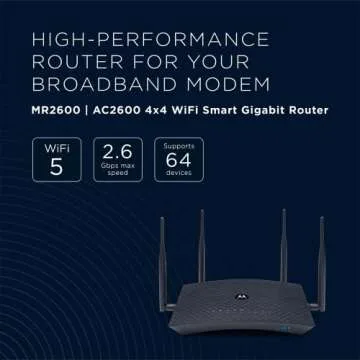Introducing the Motorola MR2600 AC2600 Router, a high-speed intelligent router that transforms the way you connect with the digital world. With its robust design and cutting-edge features, this router serves as a seamless link between all your WiFi and Ethernet devices, ensuring you stay connected with unparalleled ease and efficiency. Expertly crafted by Motorola, a trusted brand in technology, the MR2600 delivers high-speed internet access while accommodating multiple devices simultaneously....