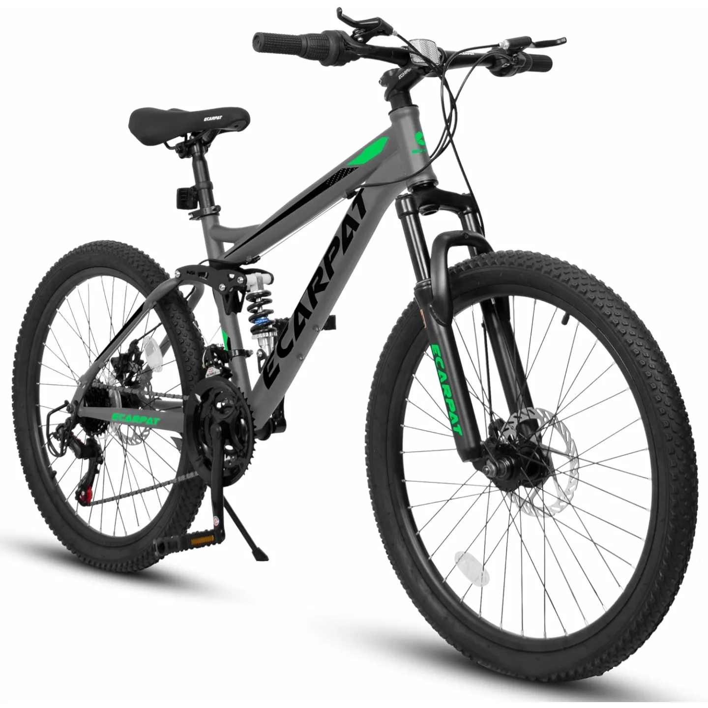 Show moreIntroducing the Ecarpat Full Dual Suspension 24 Inch Mountain Bike, a masterfully engineered bicycle built for both performance and comfort. Perfect for trail riding, city commuting, and more, this bike features a carbon steel frame that's robust and reliable. Whether you're navigating rugged terrains or smooth city roads, the 21-speed disc brake system ensures optimal control and safety. The front fork and rear shock absorbers add a layer of comfort, making every ride smooth and enjoyable. Suitable for both men and women, this versatile bike is designed to cater to a wide range of riders.