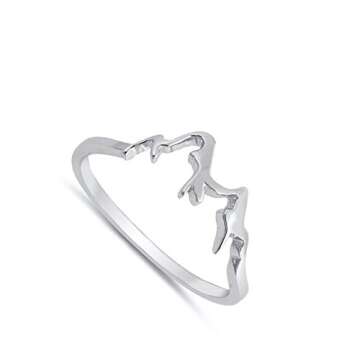 Mountain Range Snow Caps Outdoor Hiking Ring 925 Sterling Silver Band Sizes 4-13