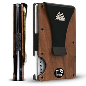 Mountain Voyage Minimalist Wallet - Slim RFID, Natural Wood, Money Clip