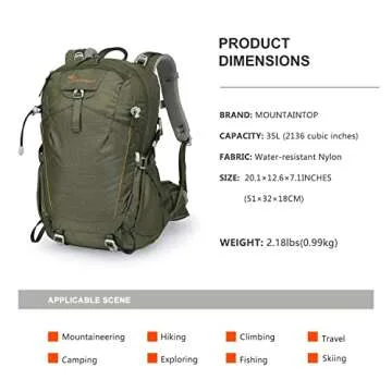 MOUNTAINTOP 35L Hiking Backpack for Women & Man Outdoor Backpack with Rain Cover for Camping, Cycling and Traveling