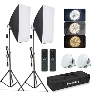 MOUNTDOG Softbox Lighting Kit – Enhance Your Photography with 2x85W LED Bulbs and Remote