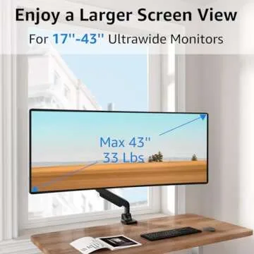 MOUNTUP Single Monitor Mount fits 17''-43'' Ultrawide Screen, Holds 6.6-33lbs, Computer Monitor Arm Desk Mount, Heavy Duty Gas Spring Monitor Stand for Flat/Curved Screen, with C-clamp/Grommet Base