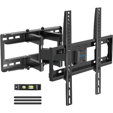 This full motion TV wall mount offers unparalleled convenience with features like dual swivel and articulating arms, allowing you to adjust your TV easily for optimal viewing angles, whether it’s tilting up 5° or down 13° to reduce glare, or swiveling left or right by 45°. The combination of 3” to 15.7” wall distance adjust flexibility and post-install leveling capability ensures a perfectly aligned display from every seat in the room. Installation is a breeze with our all-inclusive mounting system.