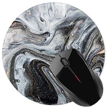 Grey Black Marble Mouse Pad with Non-Slip Rubber Base for Work and Gaming