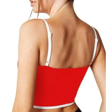 Move With You Sleeveless Spaghetti Strap Padded Sports Bra Tank Tops Square Neck Double Layer Workout Fitness Basic Crop Tops(Red,M)