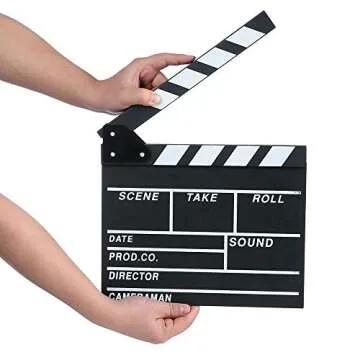 Movie Film Clap Board, Hollywood Clapper Board Wooden Film Movie Clapboard Accessory with Black & White, 12"x11" Give Away White Erasable Pen