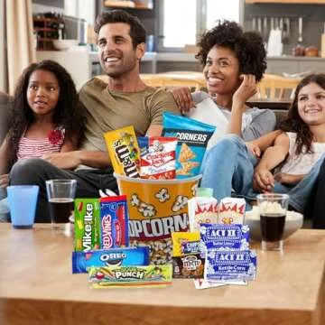 Movie Night Gift Basket Snacks Candy & Popcorn, Full size Treats for Kids, College Students & Family, Care Package Birthday Gift or popcorn lover, family night