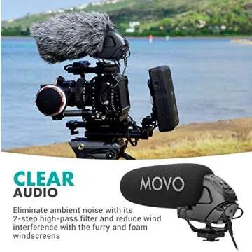 Show more The Movo VXR3031 Shotgun Microphone is engineered for those seeking to elevate their audio recording experience to professional levels. Featuring a supercardioid polar pattern, this microphone is designed to focus on sound coming directly in front of it while effectively minimizing unwanted background noise, ensuring your recordings have exceptional clarity. The elegant and compact design makes it a perfect companion for DSLR and mirrorless cameras, camcorders, and various recording devices with a standard 3.5mm mic input.