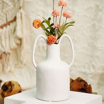 Mowtanco White Ceramic Vase with 2 Handles, Modern Farmhouse Vase for Home Decor, Decorative Pottery Flower Vase, Clay Matte Vase, Centerpieces for Dining Table - 10 Inch Tall